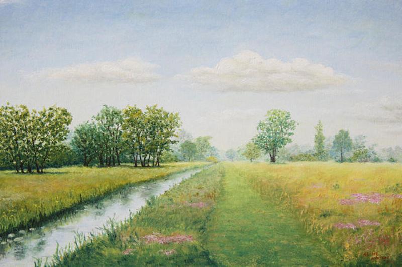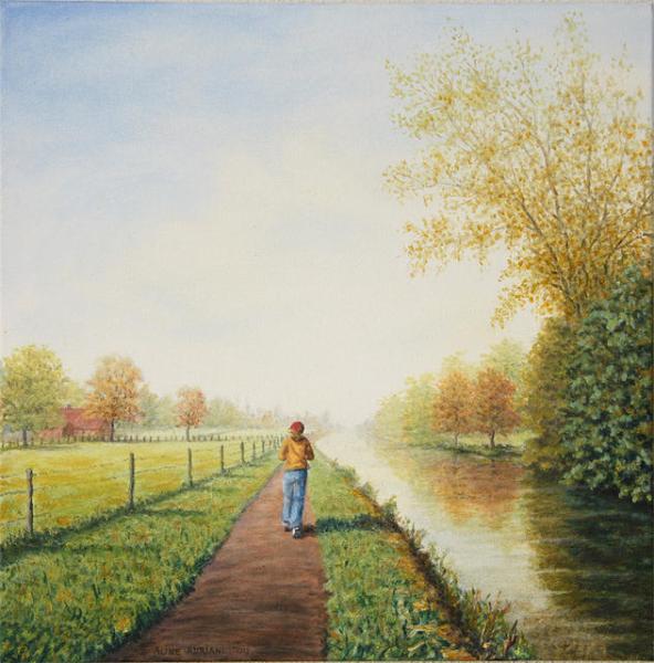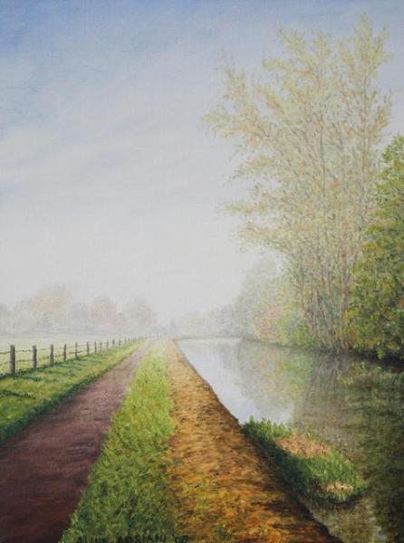 Na mijn pensioen kreeg ik eindelijk echt de tijd voor mijn grote hobby: schilderen. Ik volgde cursussen bij de Werkschuit ( vooral portret/ model) maar ben op schildergebied toch voornamelijk autodidact. Omdat ik heel graag buiten ben, in de rust en de ruimte van de natuur, en helemaal blij kan worden van mooie uitzichten, schilder ik het liefst impressies van landschappen, meestal in olieverf maar de laatste tijd ook in aquarel. Ik werk meestal vanuit mijn herinnering maar gebruik wel foto's voor bepaalde onderdelen, bijv. voor dieren of gebouwen. Omdat een van mijn dochters in Afrika woont en werkt, schilder ik de laatste tijd ook graag Afrikaanse landschappen. Ik werk realistisch, behoorlijk gedetailleerd en met veel kleurnuances, tot nu toe op vrij klein formaat. tel: 030-2203464