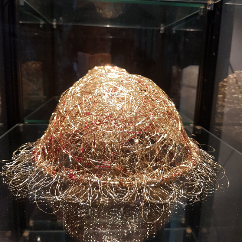 De laatste 3 objecten van haar werken zijn van de koper/messing draden. (juli 2019)