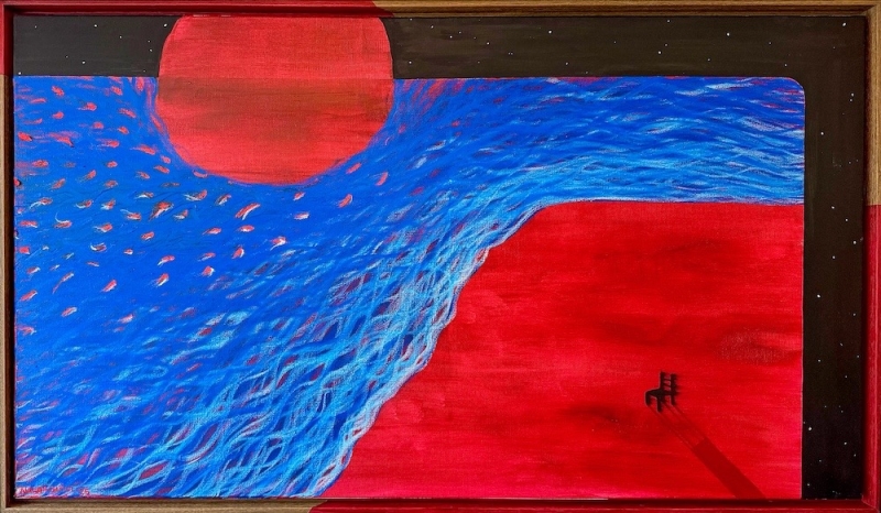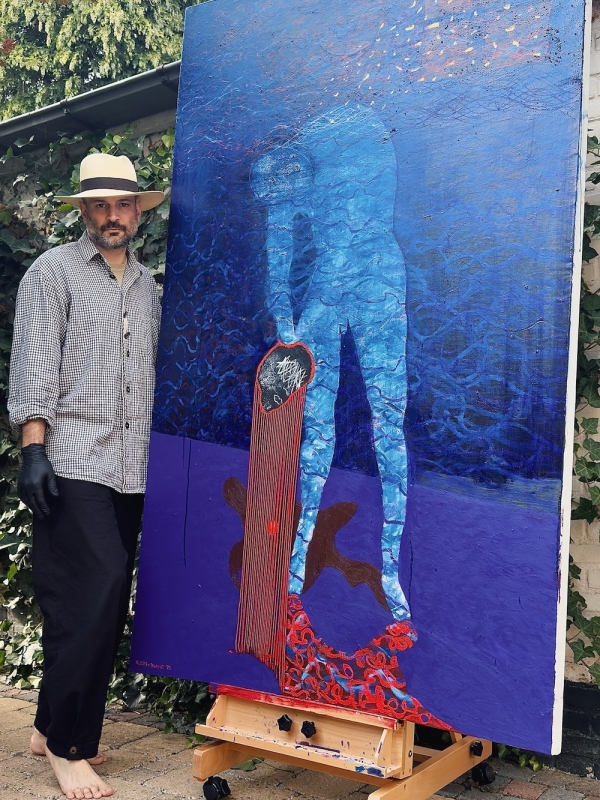 In 2025 verbreedde mijn creatieve focus zich naar de schilderkunst. Met voornamelijk olieverf en mixed media ontstaat mijn beeldtaal vanuit een wisselwerking tussen concept en intuïtie. Terugkerende motieven zoals de verlaten stoel, de rode draad en de gouden bol verwijzen naar innerlijke drempels tussen verschillende bestaanslagen.