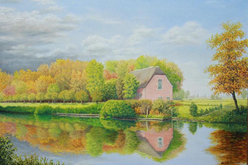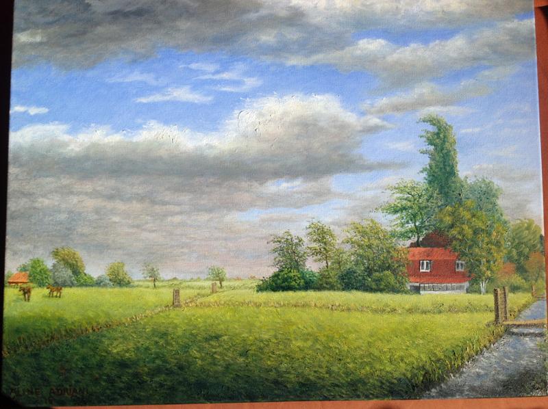 Na mijn pensioen kreeg ik eindelijk echt de tijd voor mijn grote hobby: schilderen. Ik volgde cursussen bij de Werkschuit ( vooral portret/ model) maar ben op schildergebied toch voornamelijk autodidact. Omdat ik heel graag buiten ben, in de rust en de ruimte van de natuur, en helemaal blij kan worden van mooie uitzichten, schilder ik het liefst impressies van landschappen, meestal in olieverf maar de laatste tijd ook in aquarel. Ik werk meestal vanuit mijn herinnering maar gebruik wel foto's voor bepaalde onderdelen, bijv. voor dieren of gebouwen. Omdat een van mijn dochters in Afrika woont en werkt, schilder ik de laatste tijd ook graag Afrikaanse landschappen. Ik werk realistisch, behoorlijk gedetailleerd en met veel kleurnuances, tot nu toe op vrij klein formaat. tel: 030-2203464